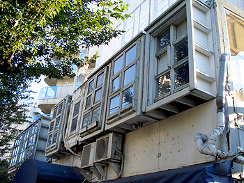 アルミのドア枠と窓枠が、その時代を物語ってる。