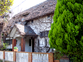 古い家の玄関の窓から見えた電灯がステキだったのに・・・。